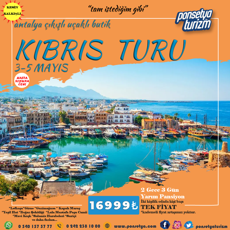 3-5 MAYIS ANTALYA ÇIKIŞLI KIBRIS TURU