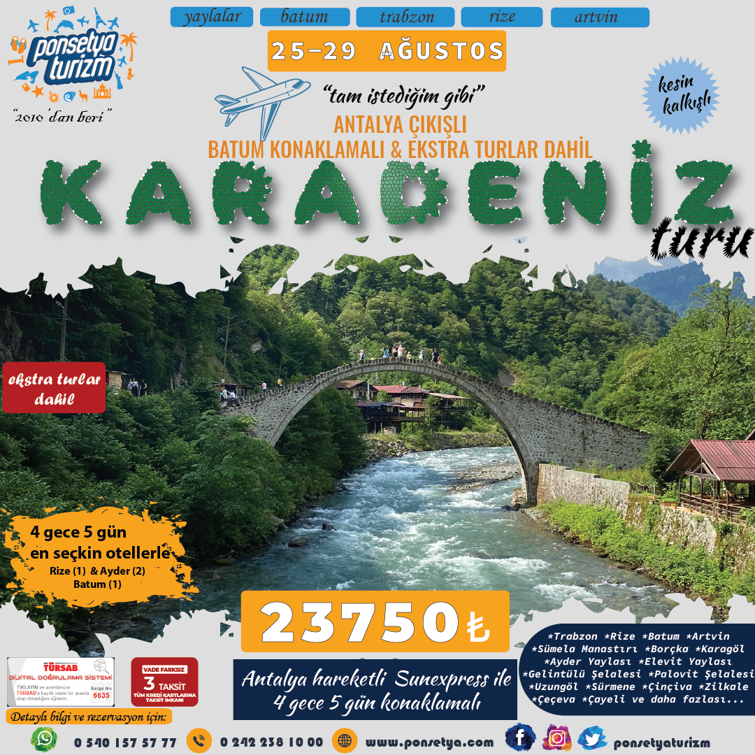 Rota: Ayder-Çağlayan-Borçka-Karagöl (150 km) Batum (90 km)